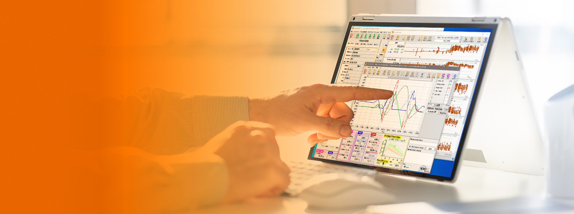 In the trend window, the progression over time can be displayed for any analysis parameter of the database over any number of measurements. Groups can also be defined and the individual course can be compared with that of the group.
